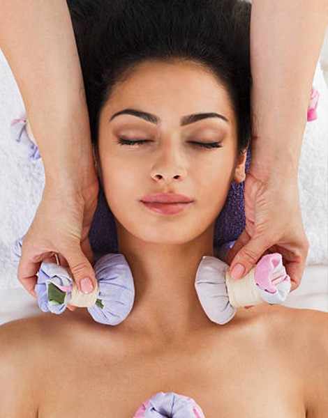 Herbal poultice massage to relieve pain and inflammation
